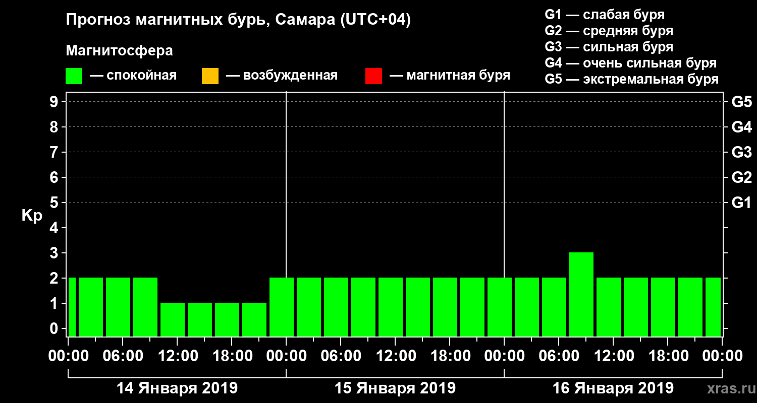 Прогноз магнитных бурь в Самаре на 14 января 2019 года