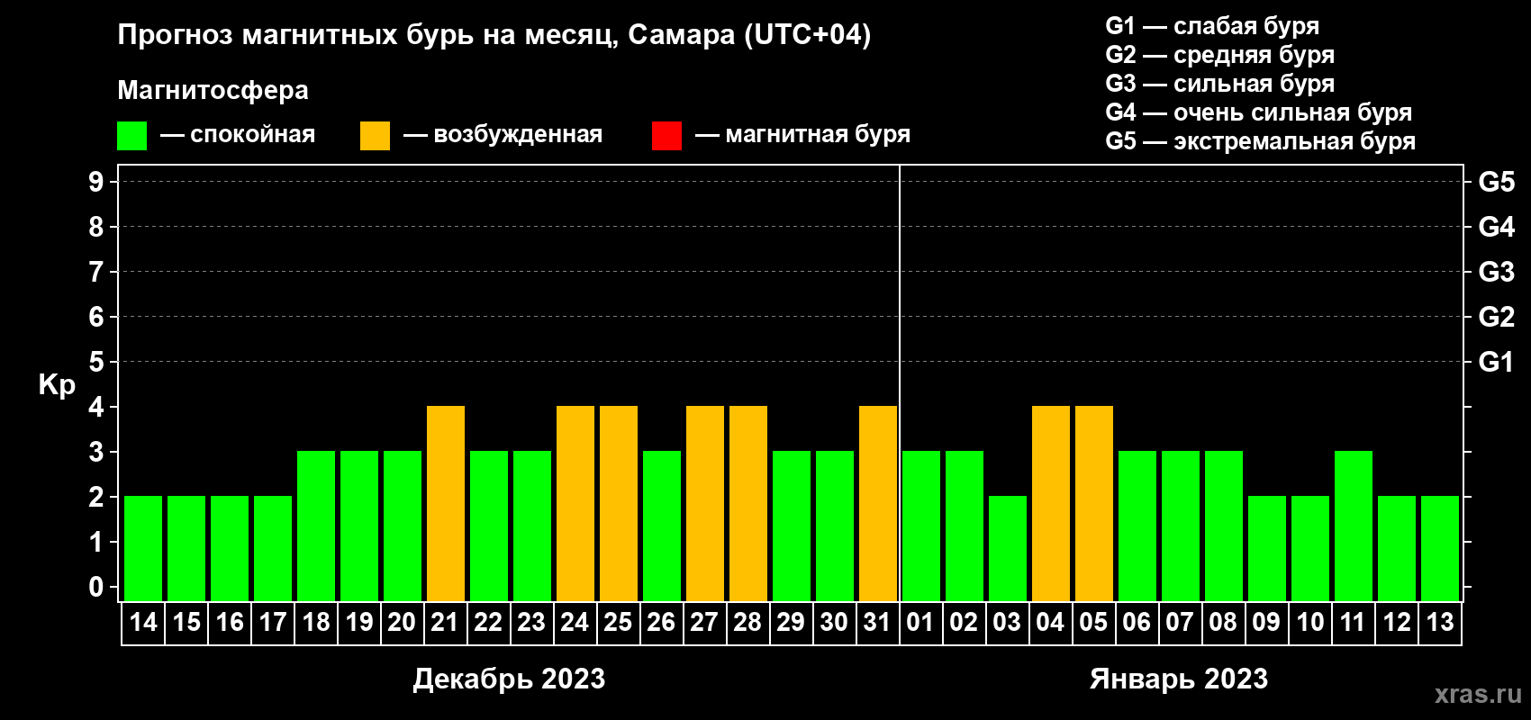 Прогноз магнитных бурь в Самаре на 14 декабря 2022 года