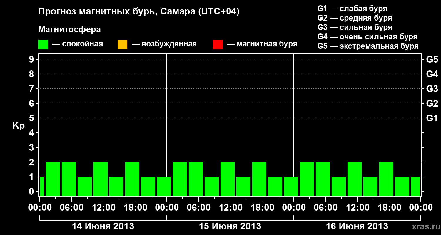 Прогноз магнитных бурь в Самаре — 14 июня 2013 года