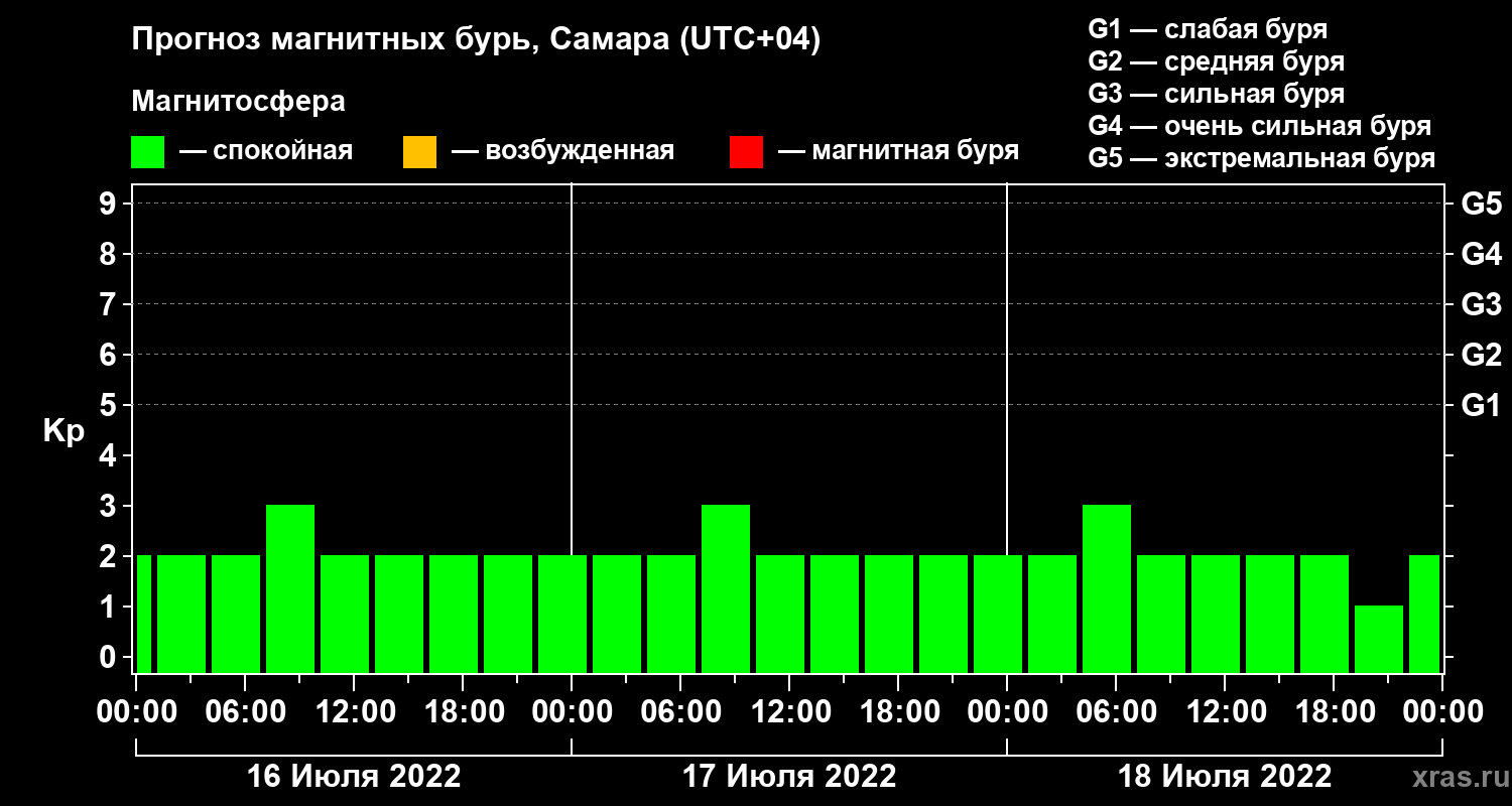 Прогноз магнитных бурь в Самаре на 16 июля 2022 года