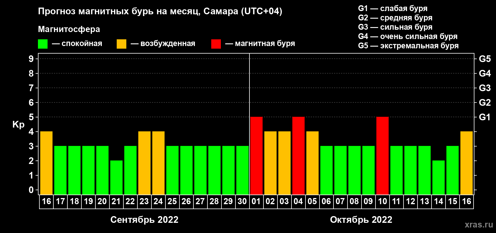 Прогноз магнитных бурь в Самаре — 16 сентября 2022 года