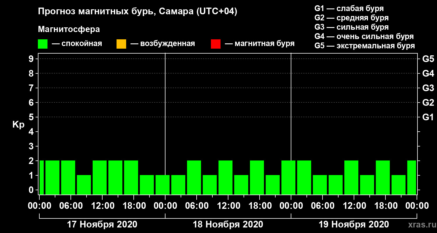 Прогноз магнитных бурь в Самаре — 17 ноября 2020 года