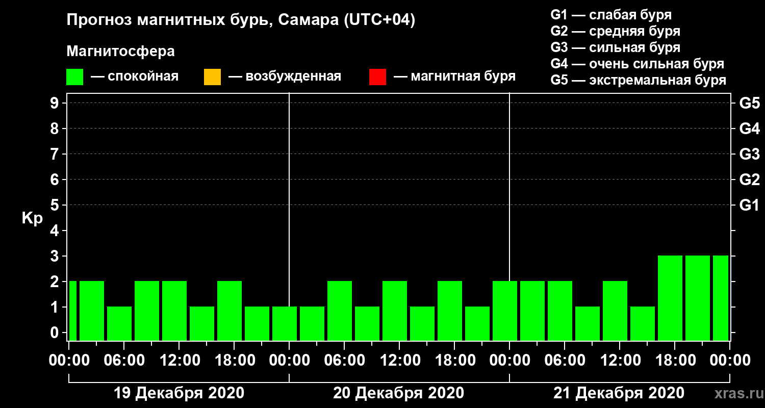 Прогноз магнитных бурь в Самаре на 19 декабря 2020 года