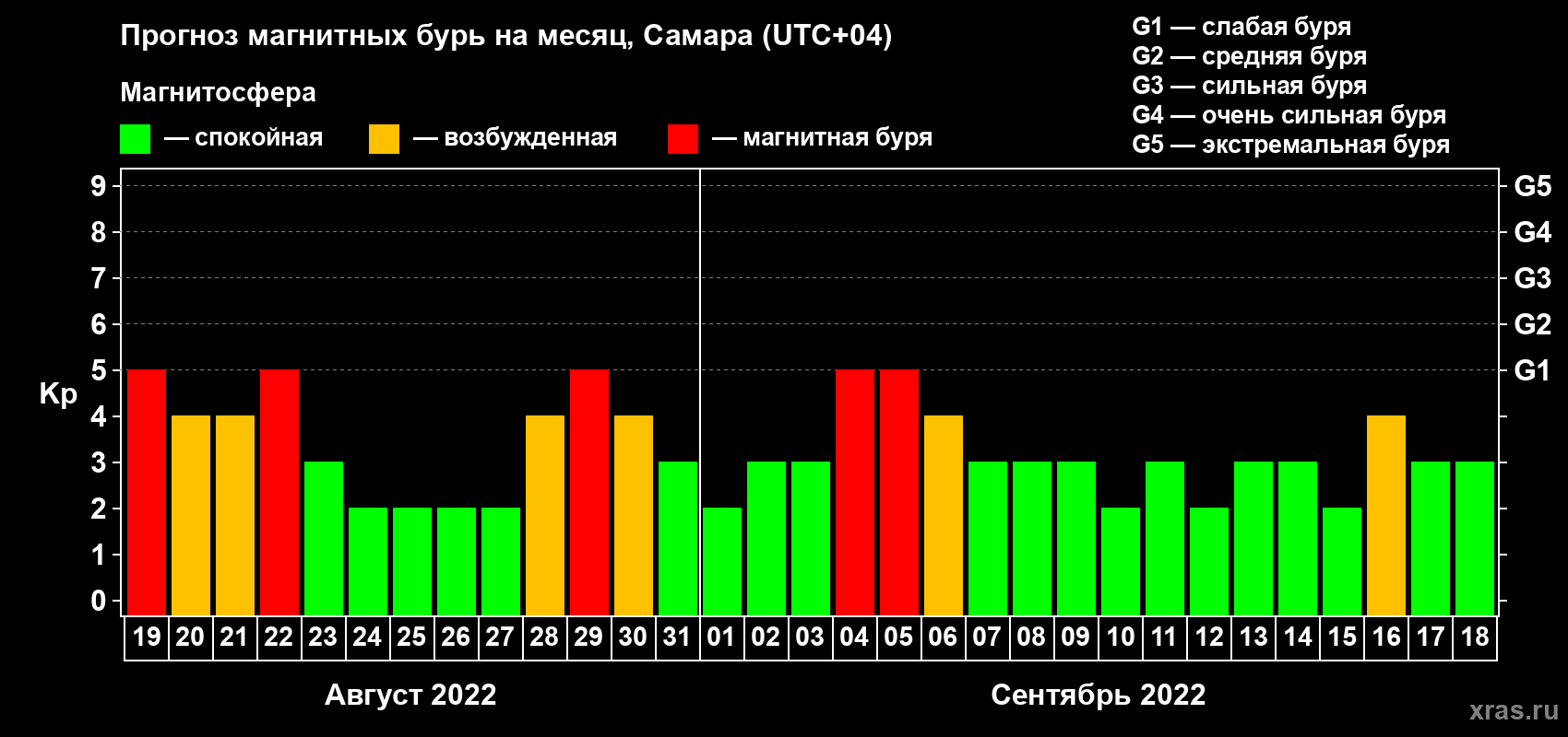 Прогноз магнитных бурь в Самаре на 19 августа 2022 года