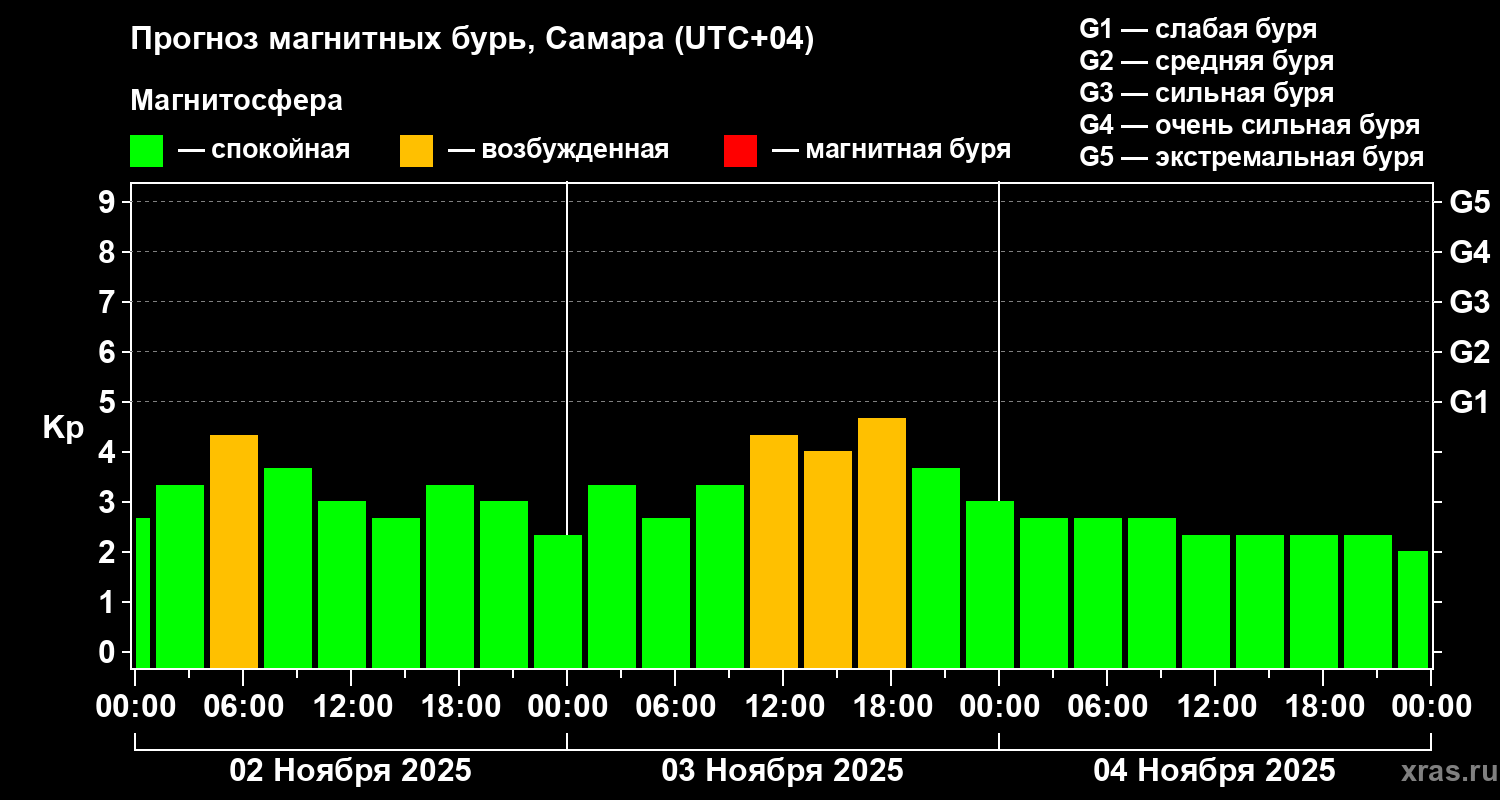 Прогноз магнитных бурь в Самаре — 2 ноября 2025 года