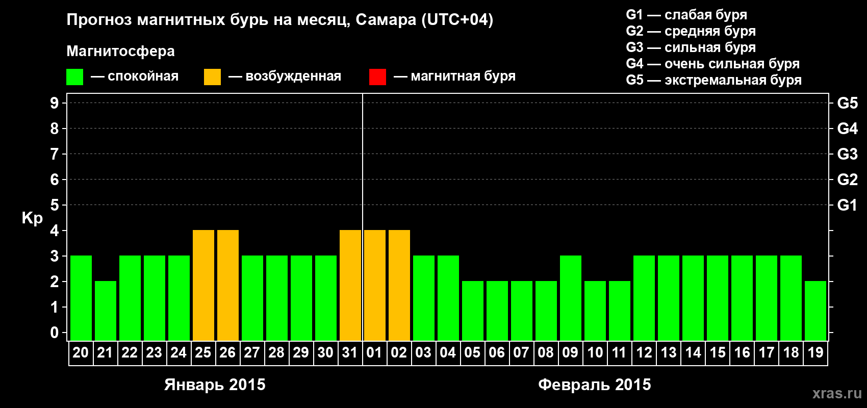 Прогноз магнитных бурь в Самаре на 20 января 2015 года