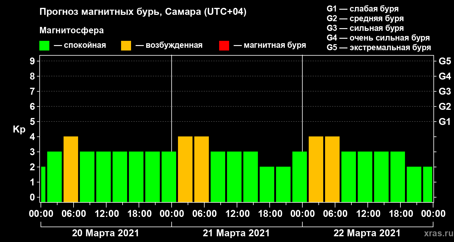 Прогноз магнитных бурь в Самаре на 20 марта 2021 года