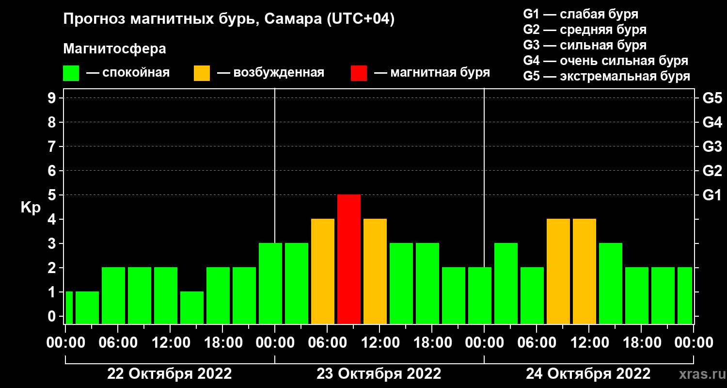 Прогноз магнитных бурь в Самаре на 22 октября 2022 года