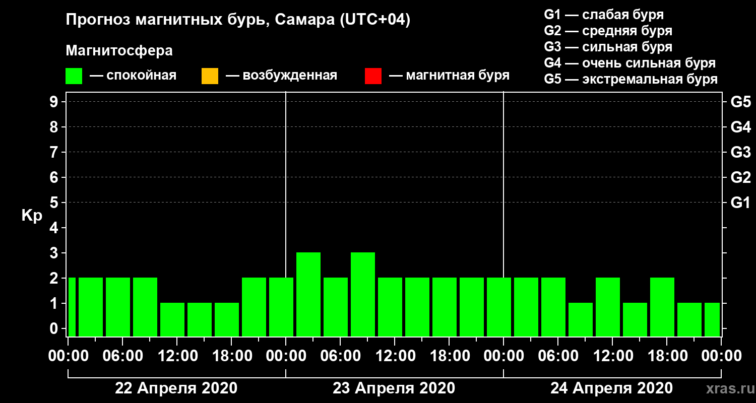 Прогноз магнитных бурь в Самаре на 22 апреля 2020 года