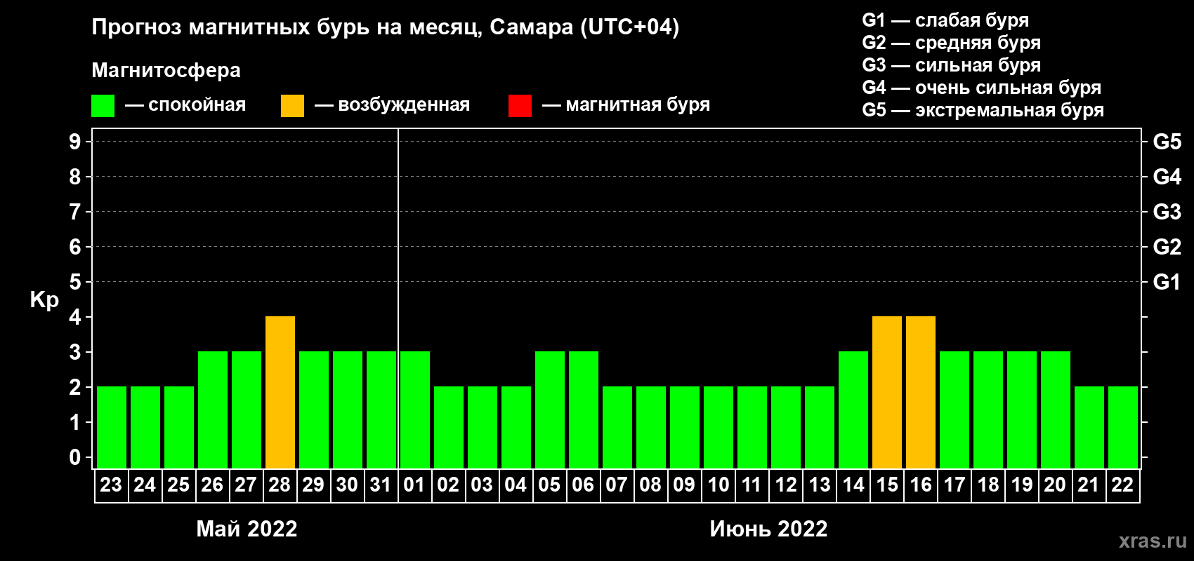 Прогноз магнитных бурь в Самаре на 23 мая 2022 года