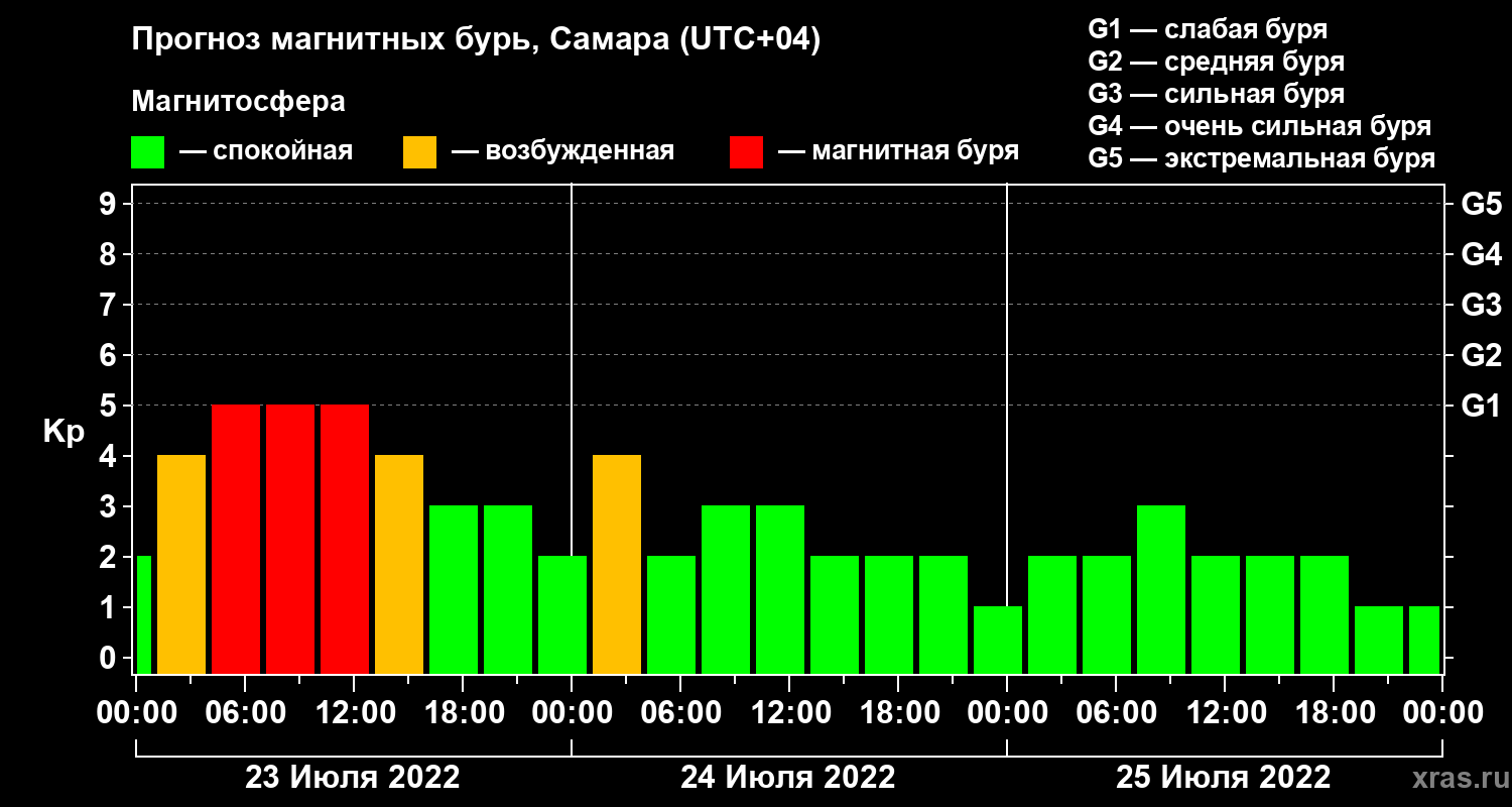 Прогноз магнитных бурь в Самаре на 23 июля 2022 года