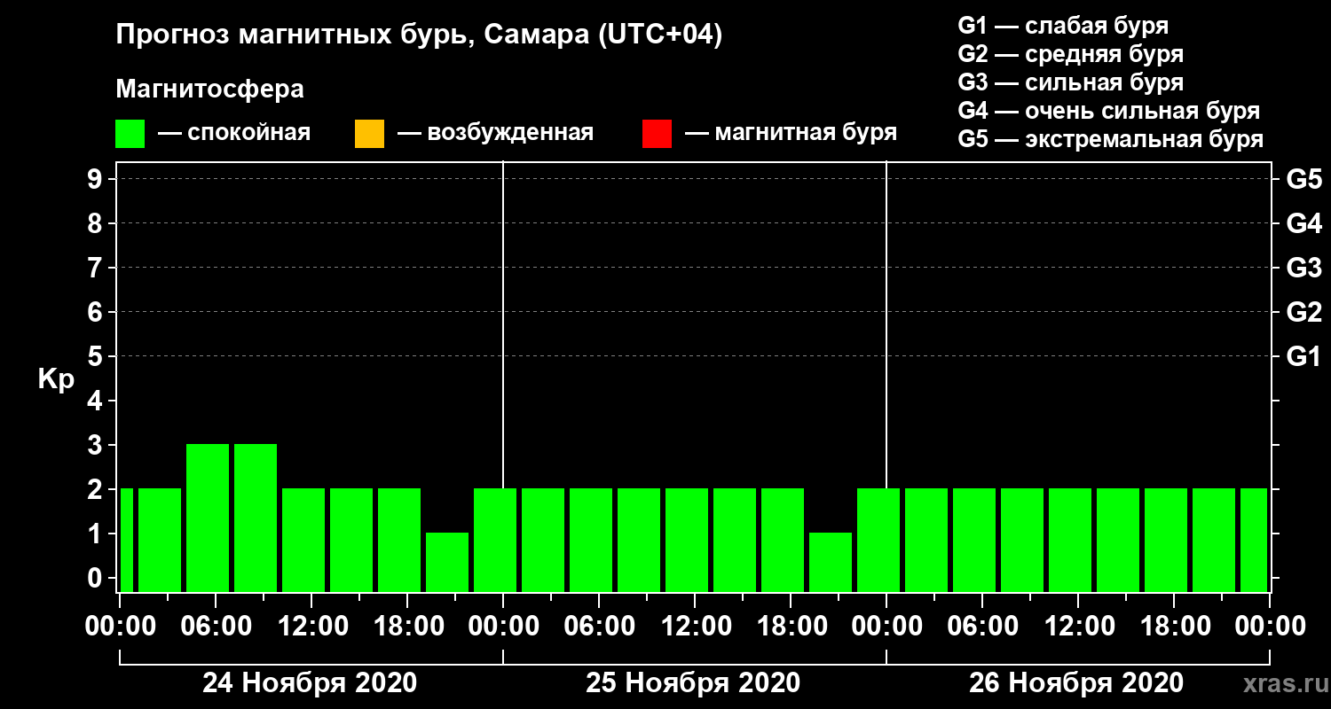 Прогноз магнитных бурь в Самаре — 24 ноября 2020 года