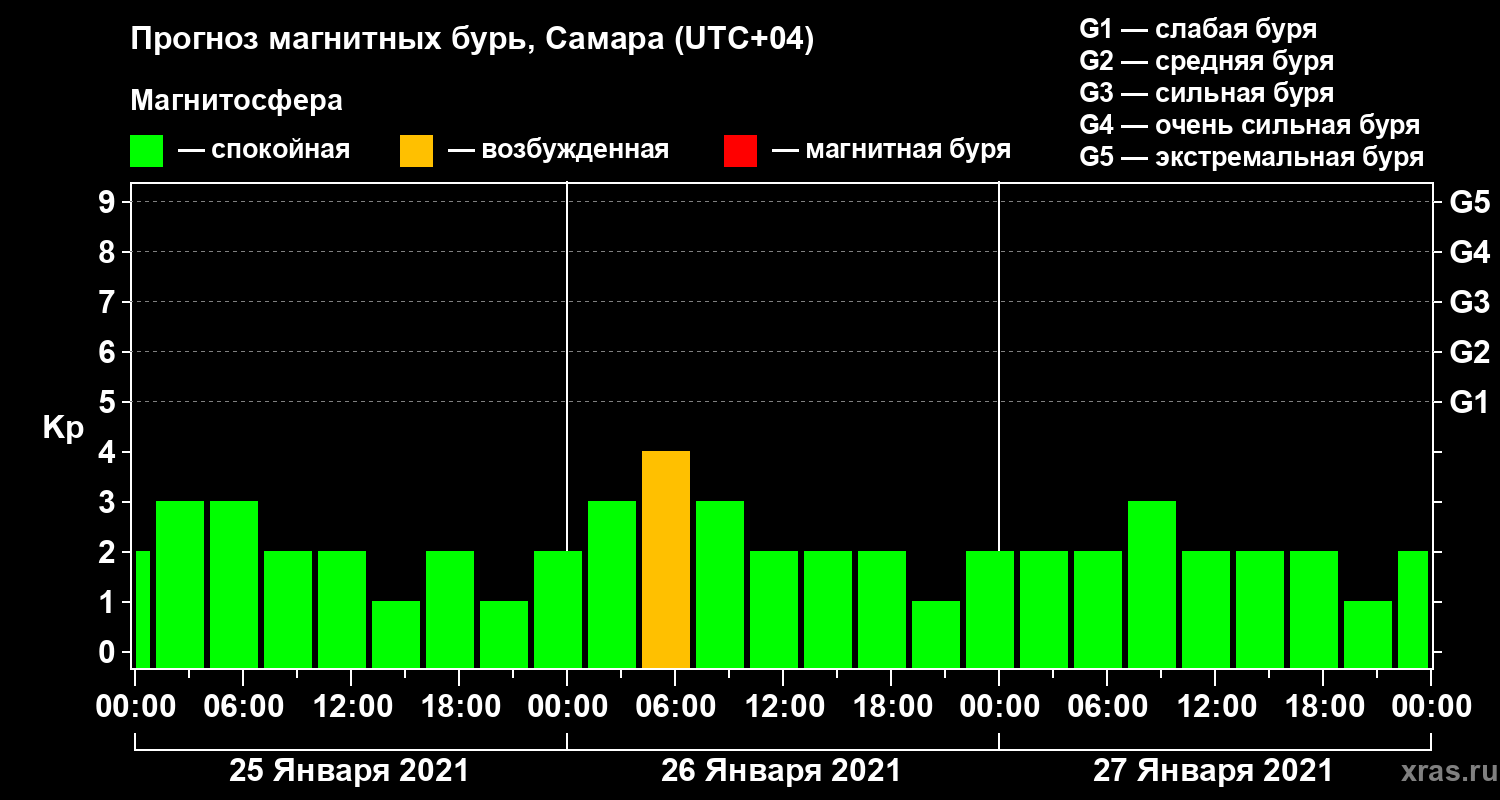Прогноз магнитных бурь в Самаре на 25 января 2021 года