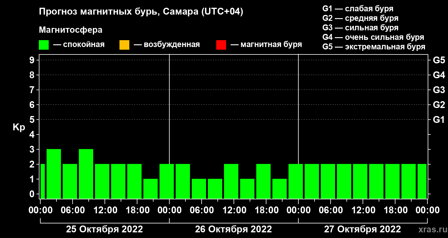 Прогноз магнитных бурь в Самаре на 25 октября 2022 года