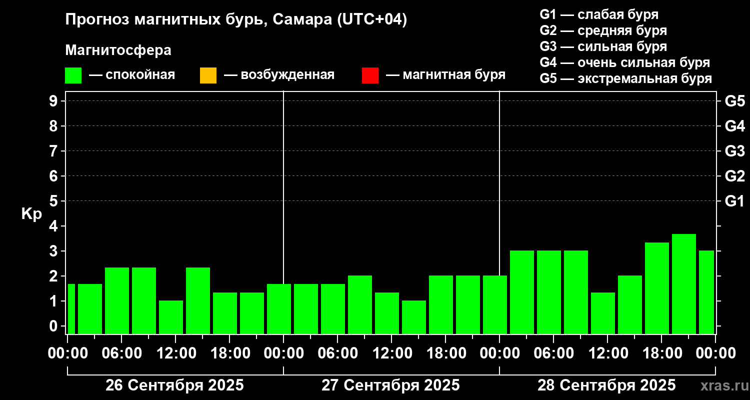 Прогноз магнитных бурь в Самаре на 26 сентября 2025 года