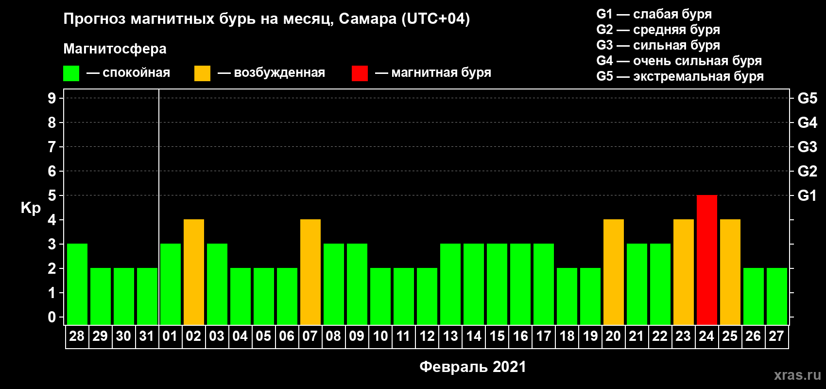 Прогноз магнитных бурь в Самаре на 28 января 2021 года
