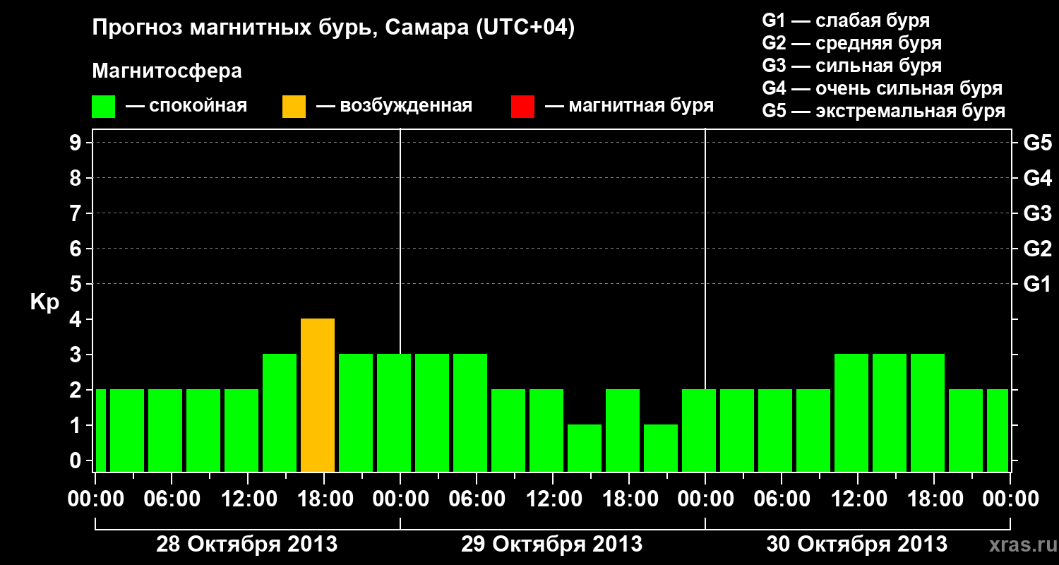Прогноз магнитных бурь в Самаре на 28 октября 2013 года