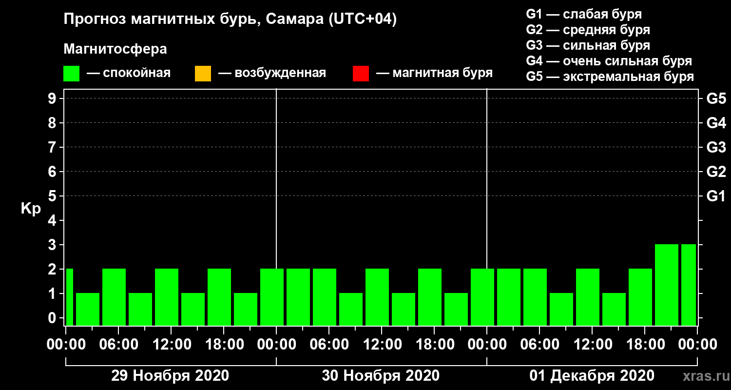 Прогноз магнитных бурь в Самаре — 29 ноября 2020 года