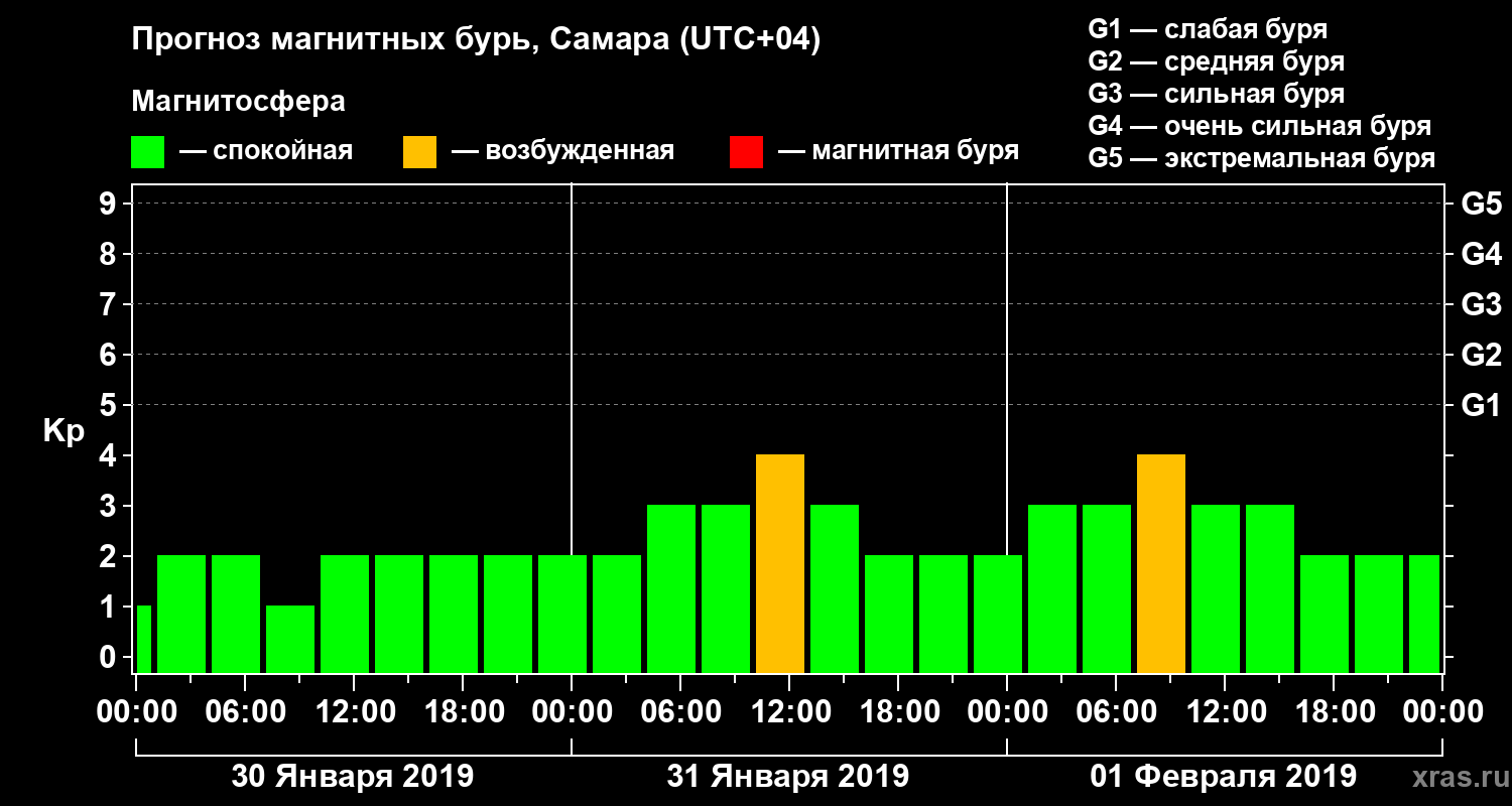 Прогноз магнитных бурь в Самаре на 30 января 2019 года