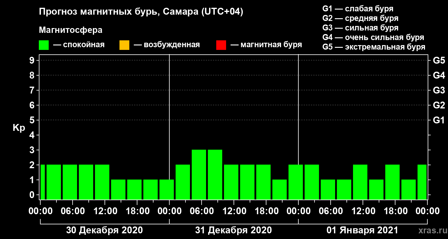 Прогноз магнитных бурь в Самаре на 30 декабря 2020 года