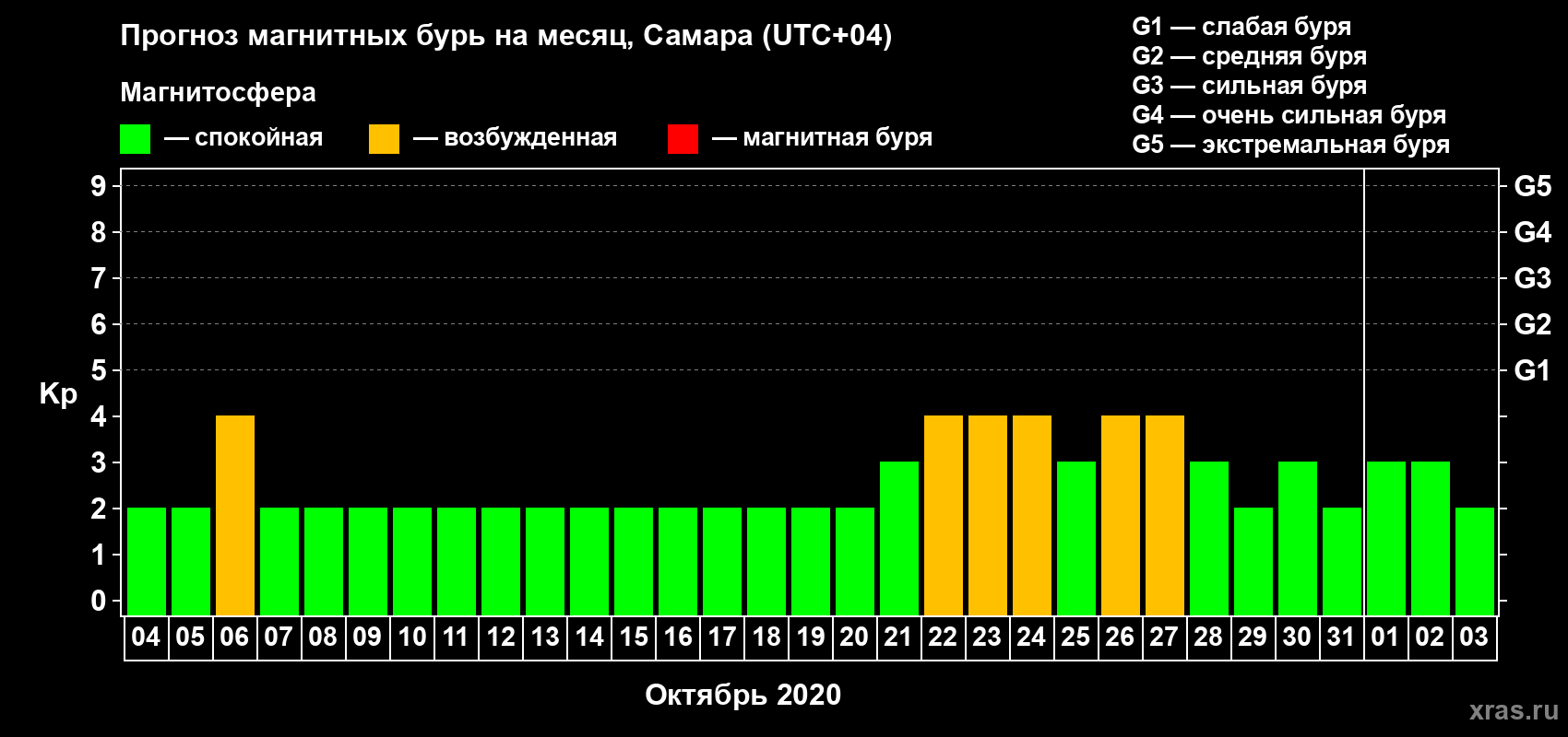 Прогноз магнитных бурь в Самаре на 4 октября 2020 года