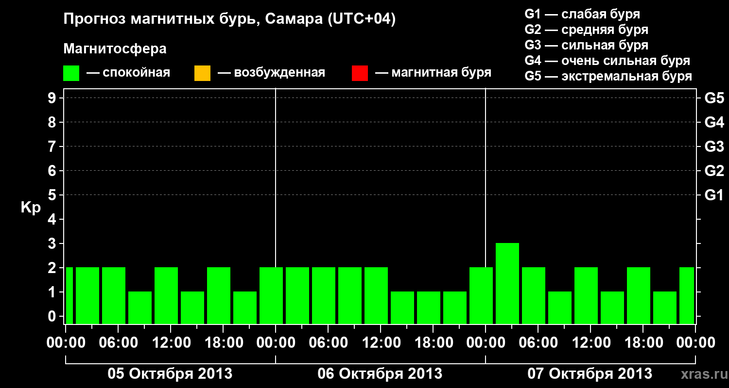 Прогноз магнитных бурь в Самаре на 5 октября 2013 года