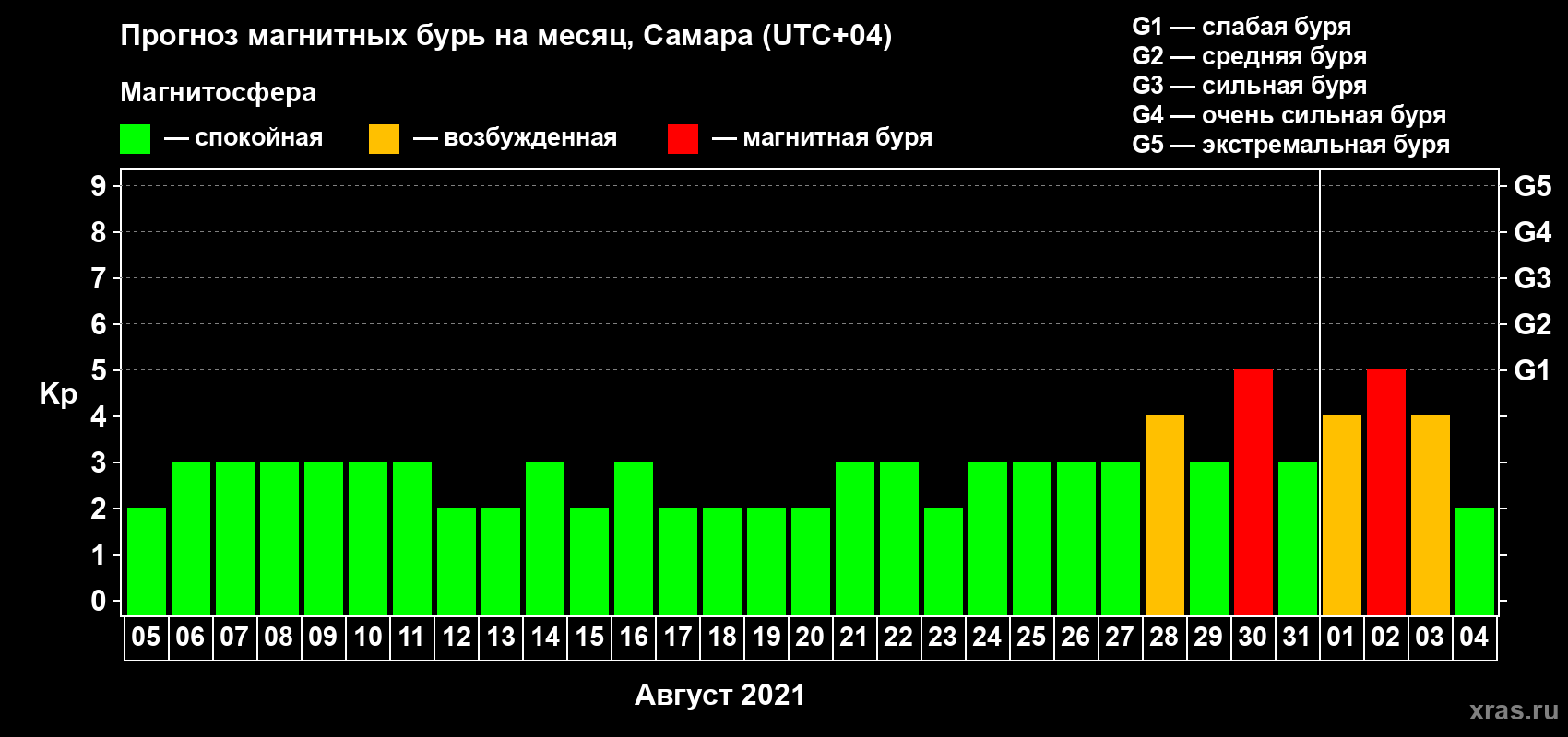 Прогноз магнитных бурь в Самаре на 5 августа 2021 года