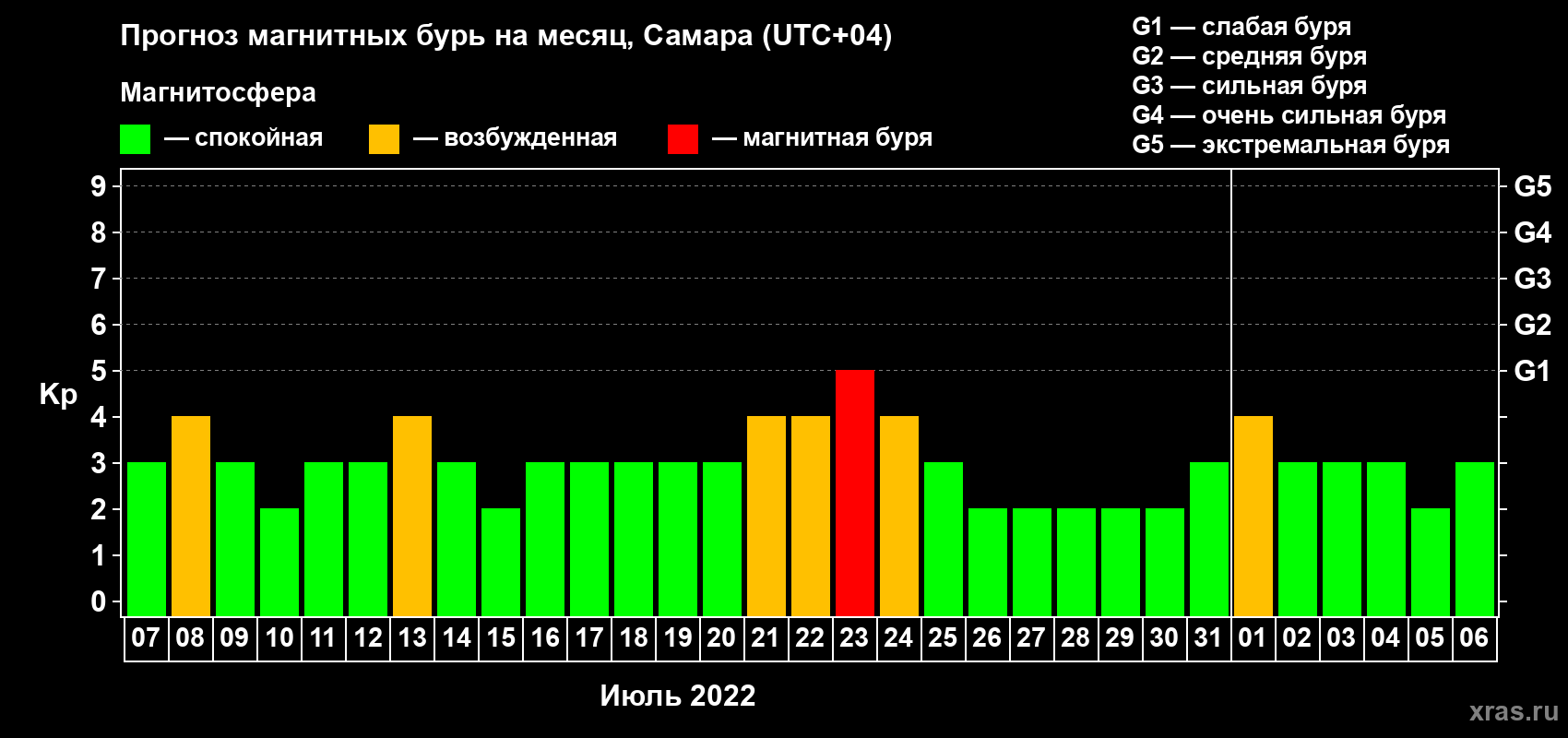 Прогноз магнитных бурь в Самаре на 7 июля 2022 года
