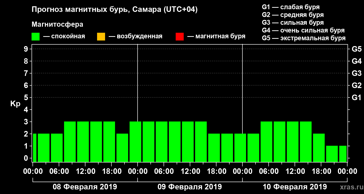 Прогноз магнитных бурь в Самаре на 8 февраля 2019 года