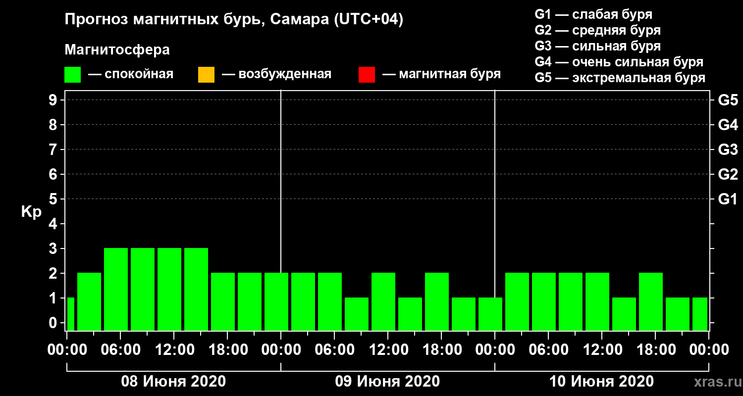 Прогноз магнитных бурь в Самаре на 8 июня 2020 года
