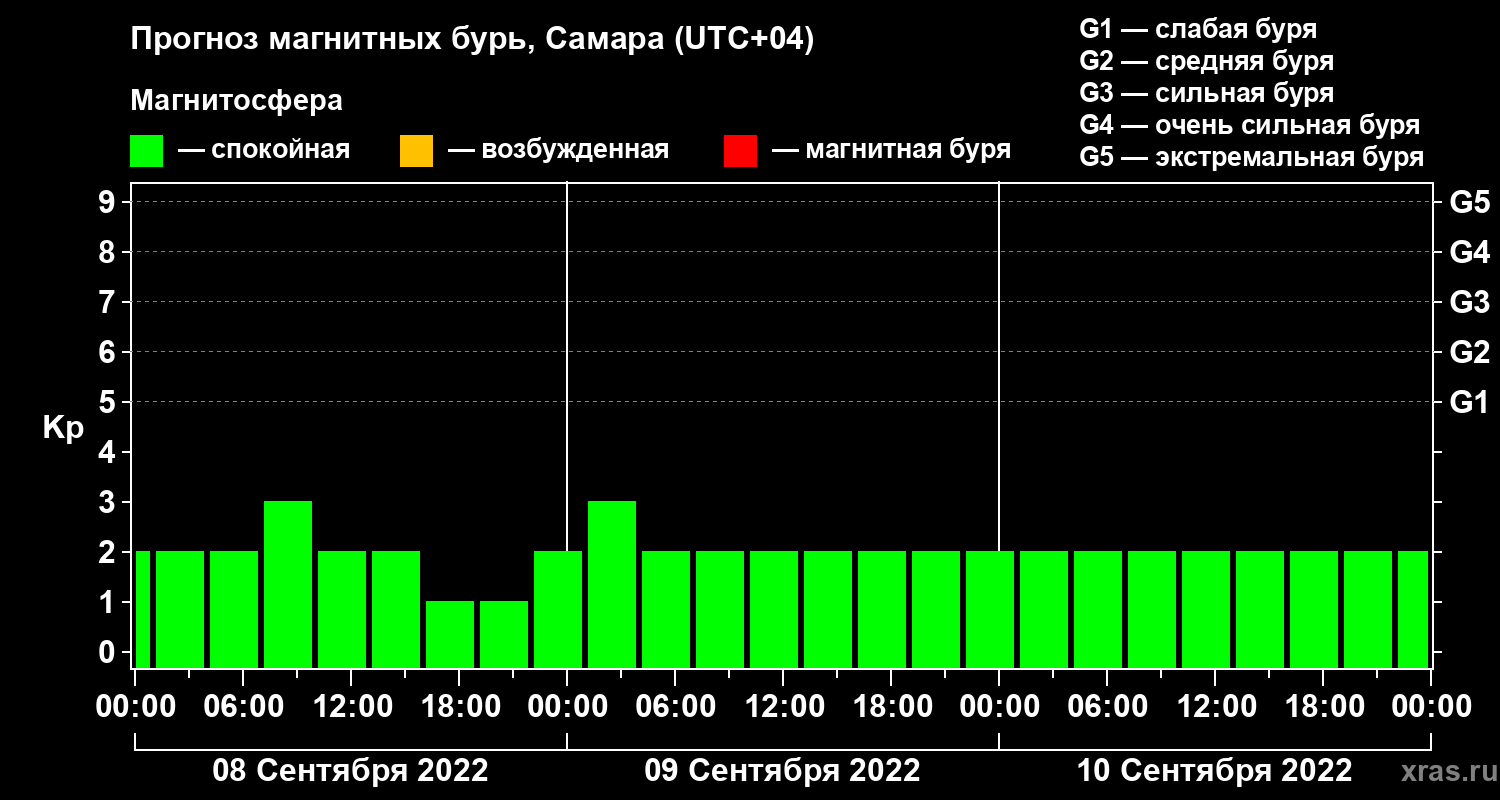 Прогноз магнитных бурь в Самаре на 8 сентября 2022 года