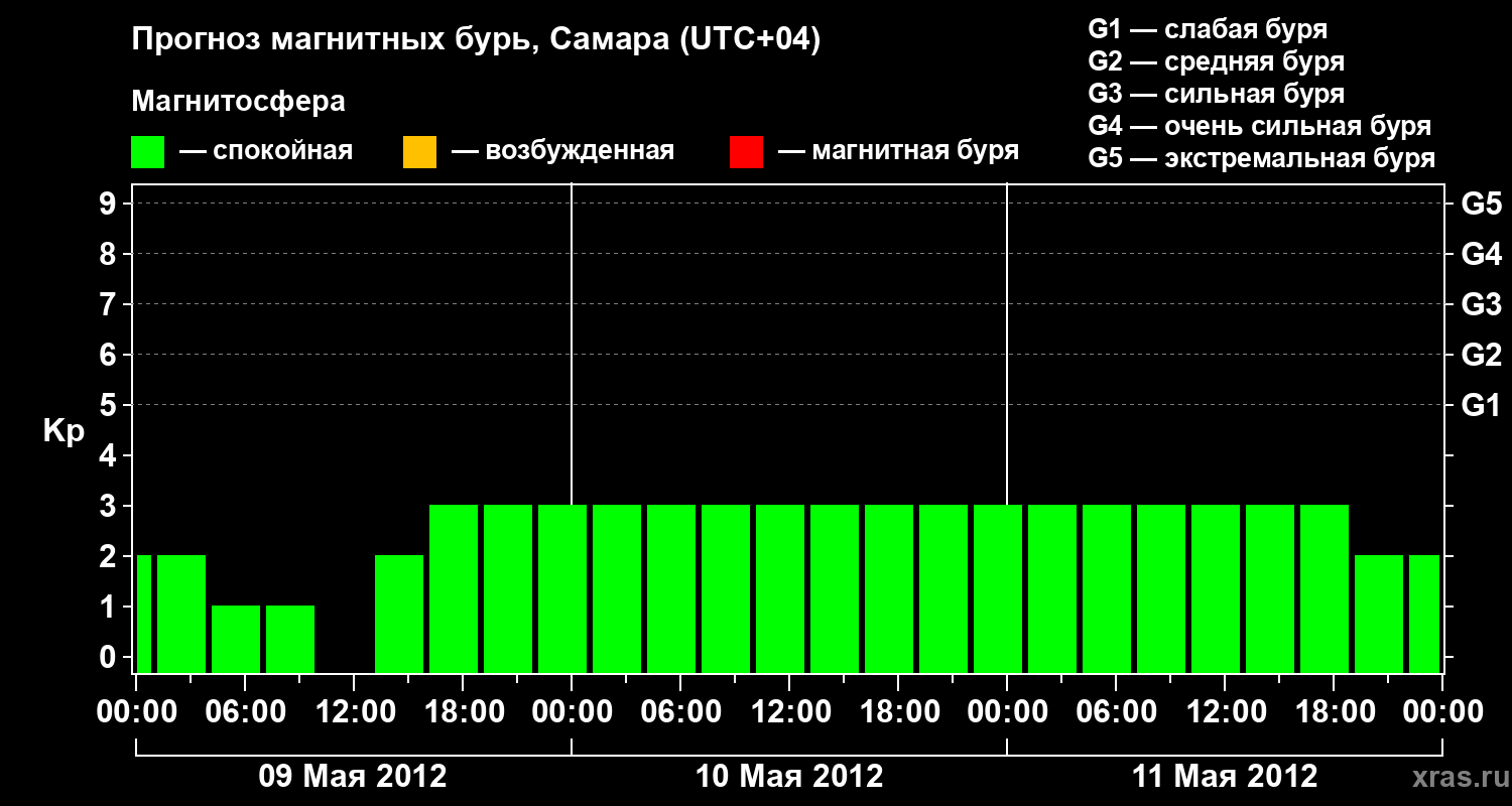 Прогноз магнитных бурь в Самаре на 9 мая 2012 года