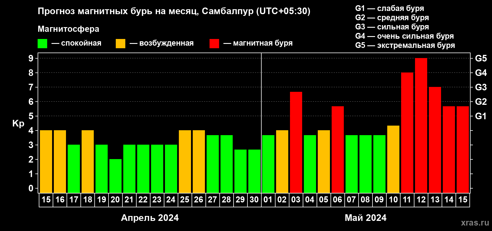 Прогноз магнитных бурь в Самбалпуре — 15 апреля 2024 года