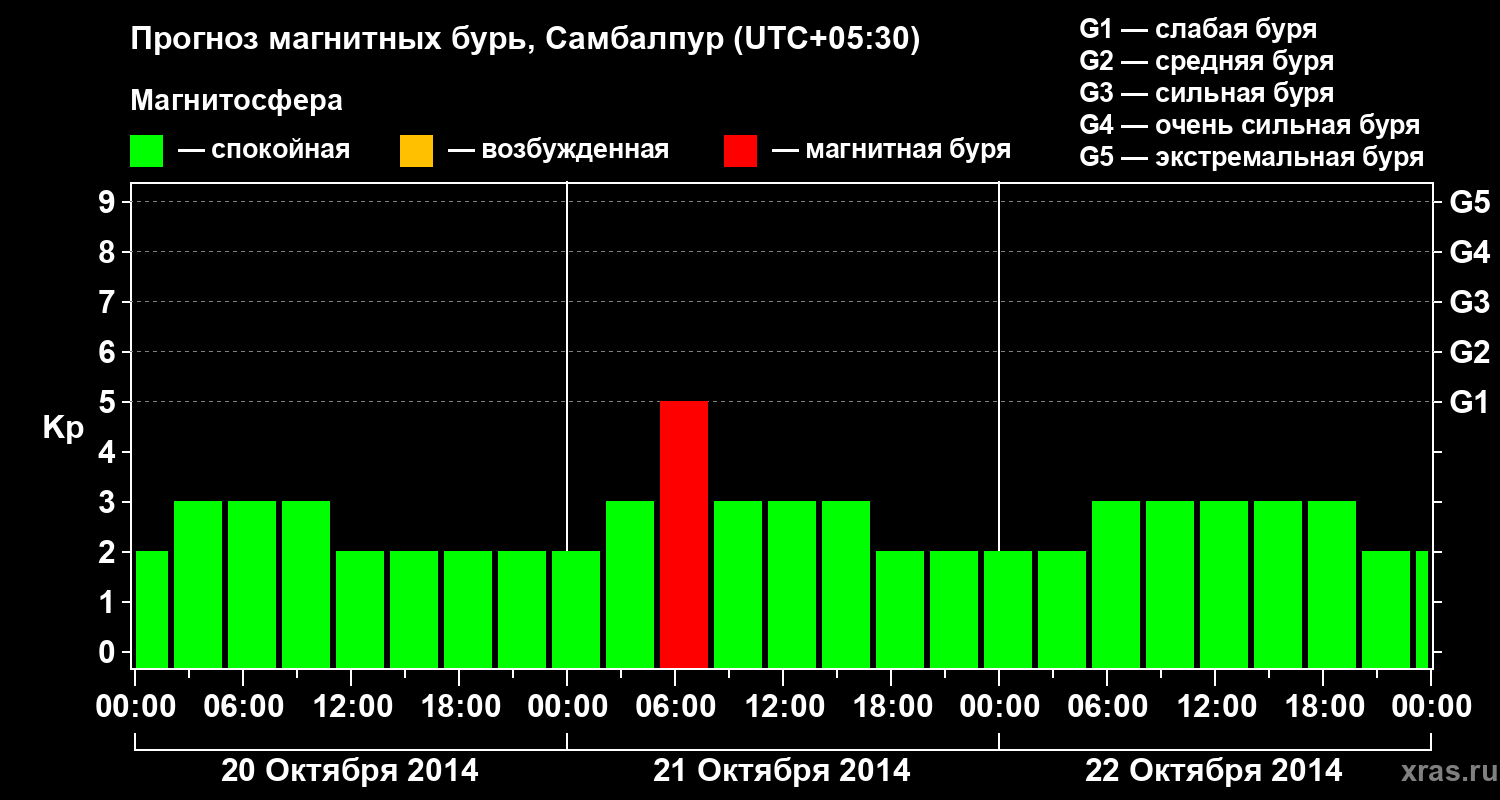Прогноз магнитных бурь в Самбалпуре — 20 октября 2014 года