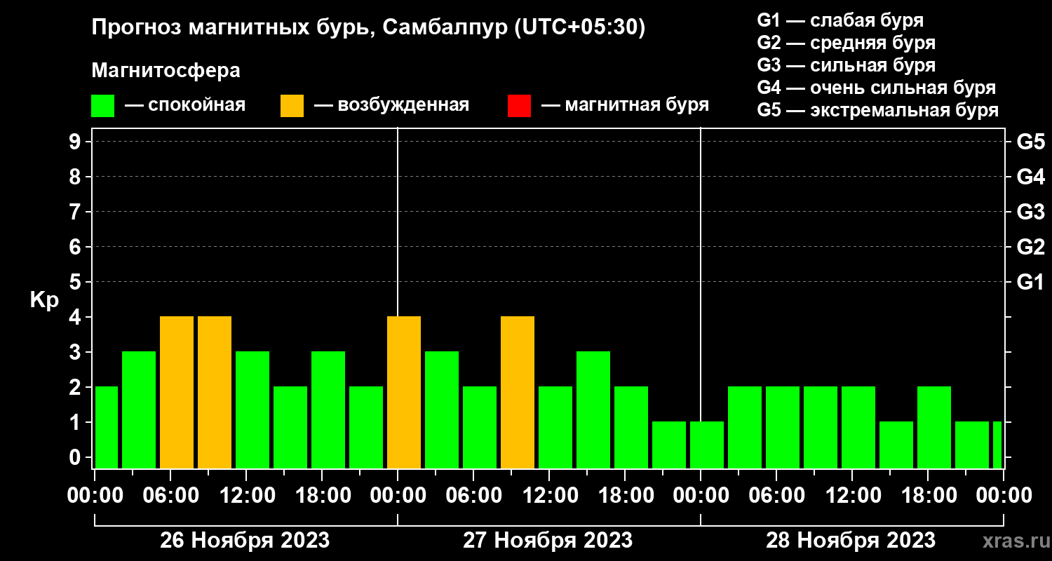 Прогноз магнитных бурь в Самбалпуре — 26 ноября 2023 года