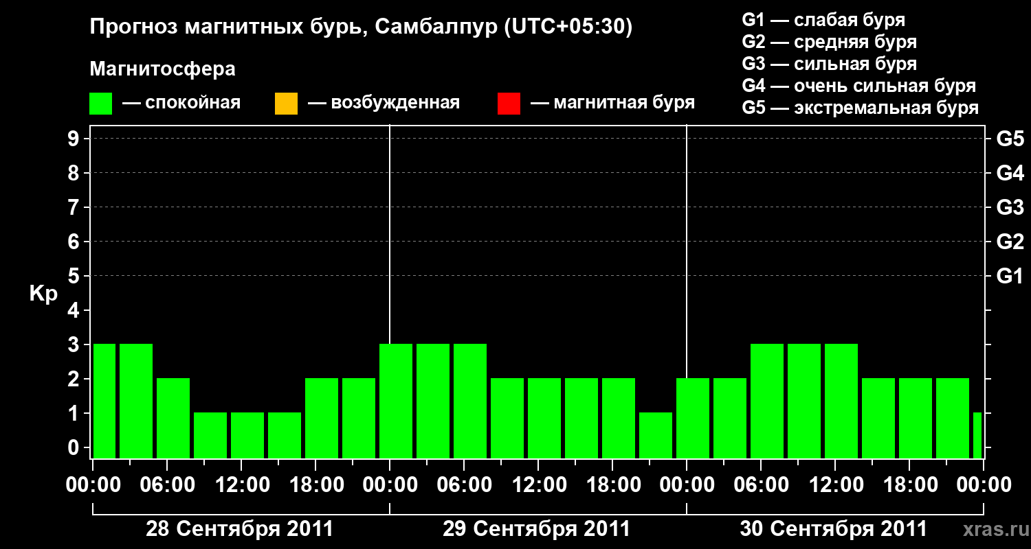 Прогноз магнитных бурь в Самбалпуре — 28 сентября 2011 года