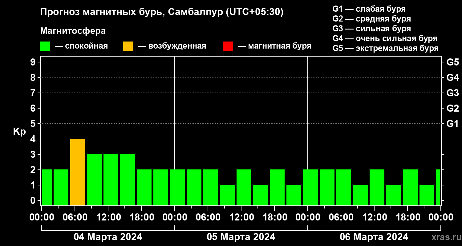 Прогноз магнитных бурь в Самбалпуре — 4 марта 2024 года