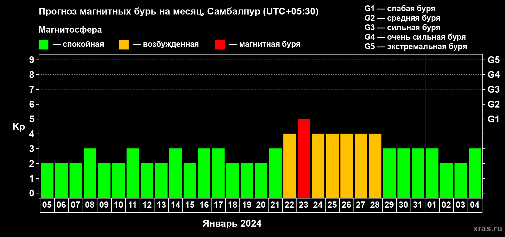 Прогноз магнитных бурь в Самбалпуре — 5 января 2024 года