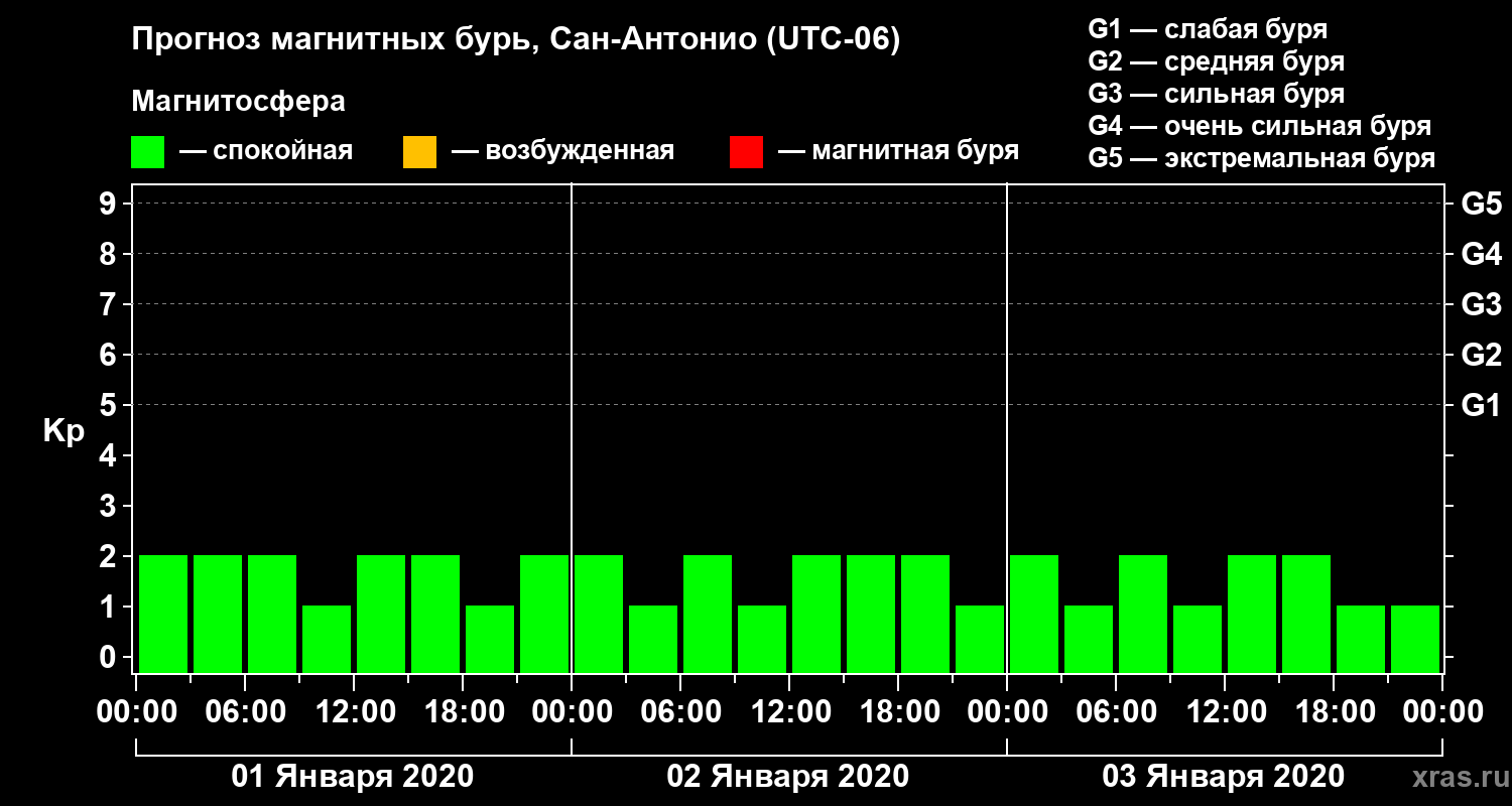 Прогноз магнитных бурь Сан-Антонио на 1 января 2020 года