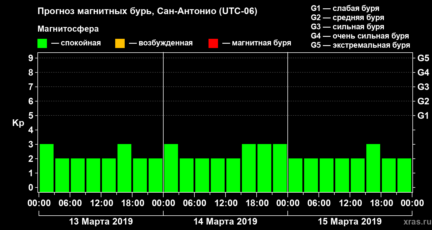 Прогноз магнитных бурь Сан-Антонио на 13 марта 2019 года