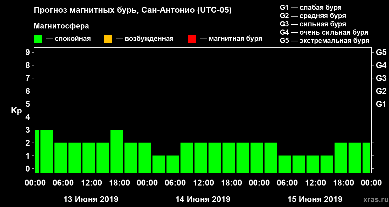 Прогноз магнитных бурь Сан-Антонио на 13 июня 2019 года