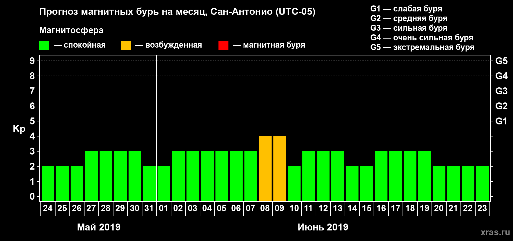 Прогноз магнитных бурь Сан-Антонио — 24 мая 2019 года