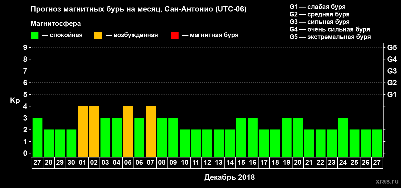 Прогноз магнитных бурь Сан-Антонио — 27 ноября 2018 года
