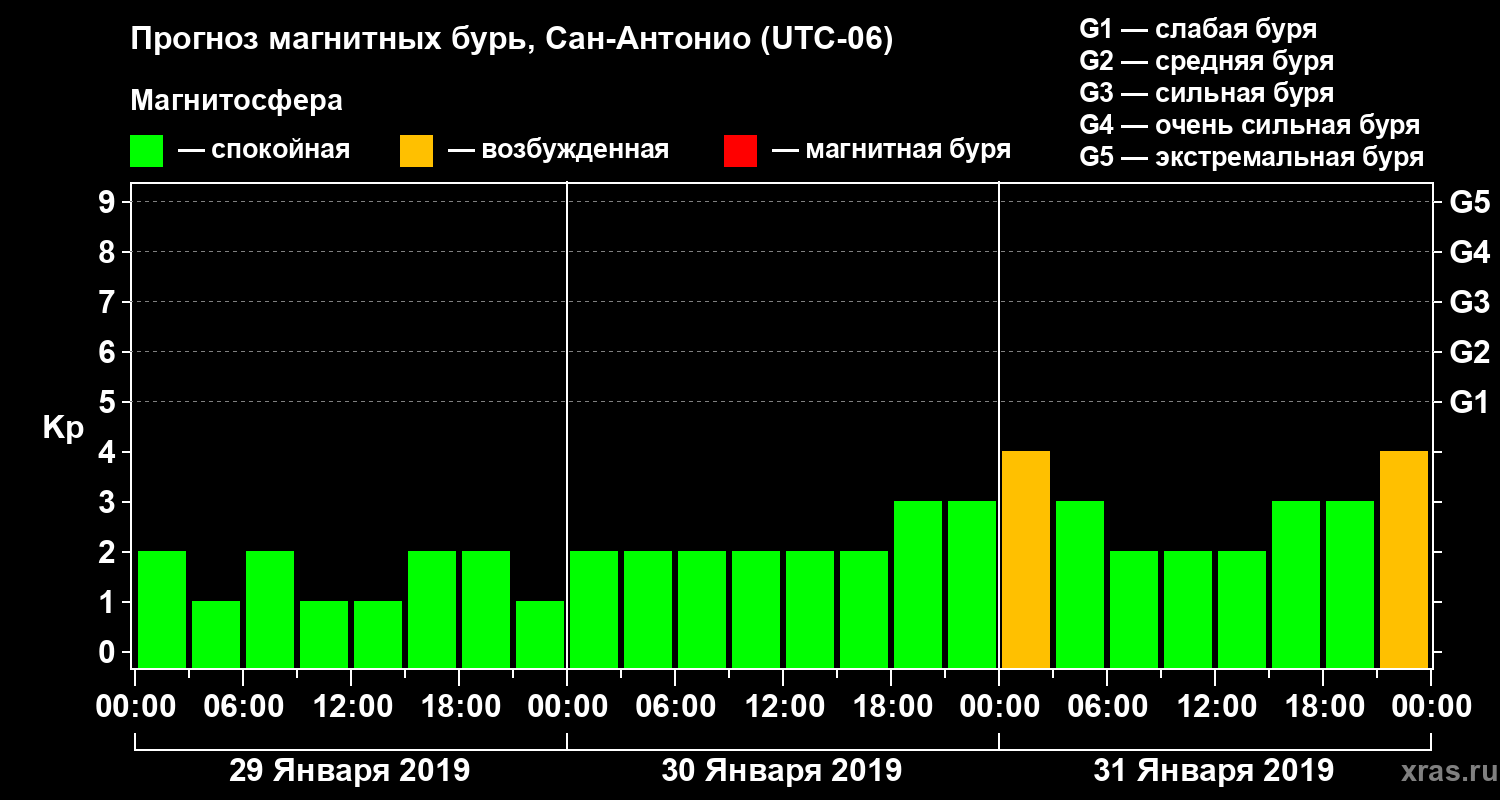 Прогноз магнитных бурь Сан-Антонио — 29 января 2019 года