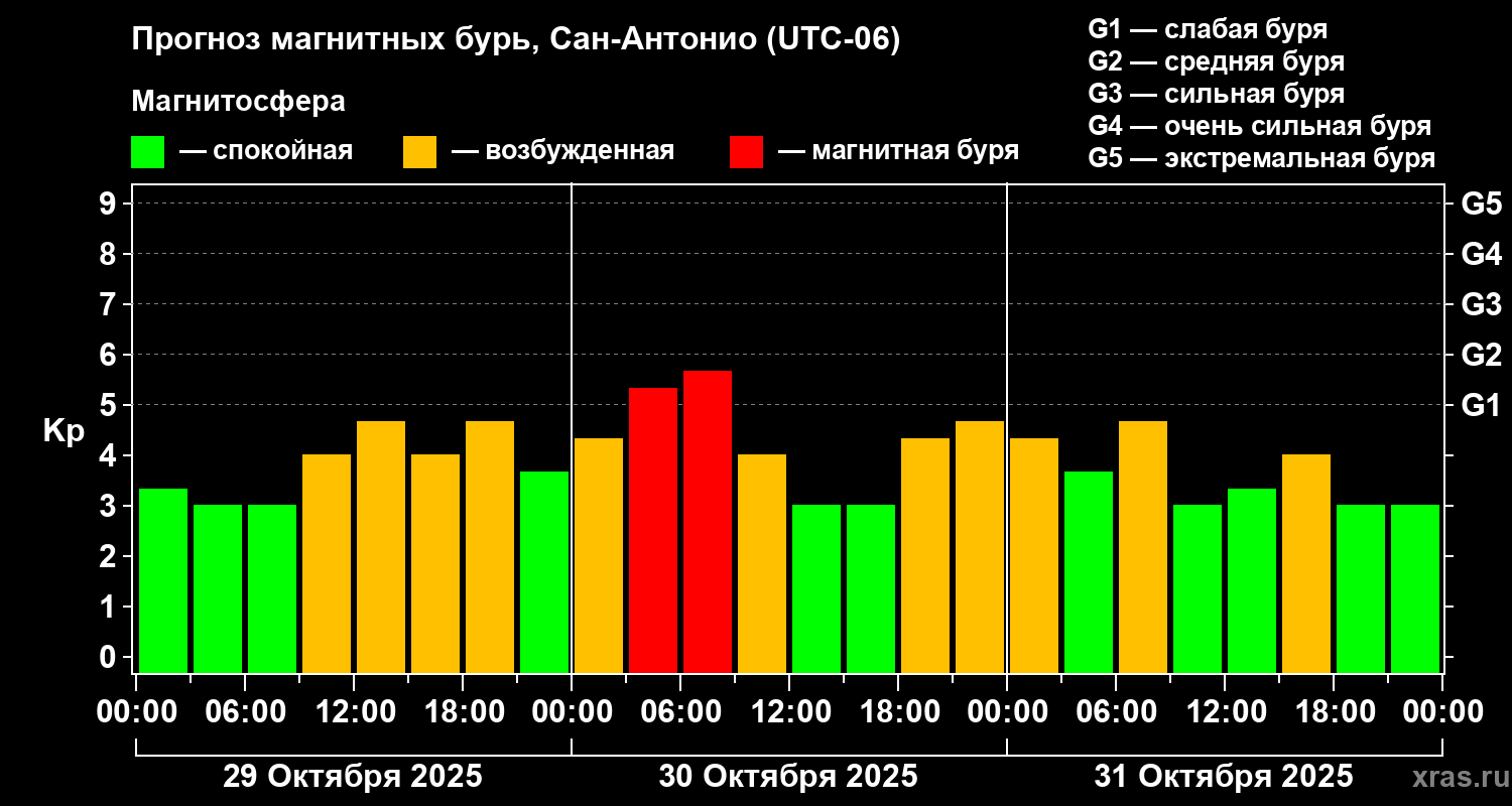 Прогноз магнитных бурь Сан-Антонио на 29 октября 2025 года
