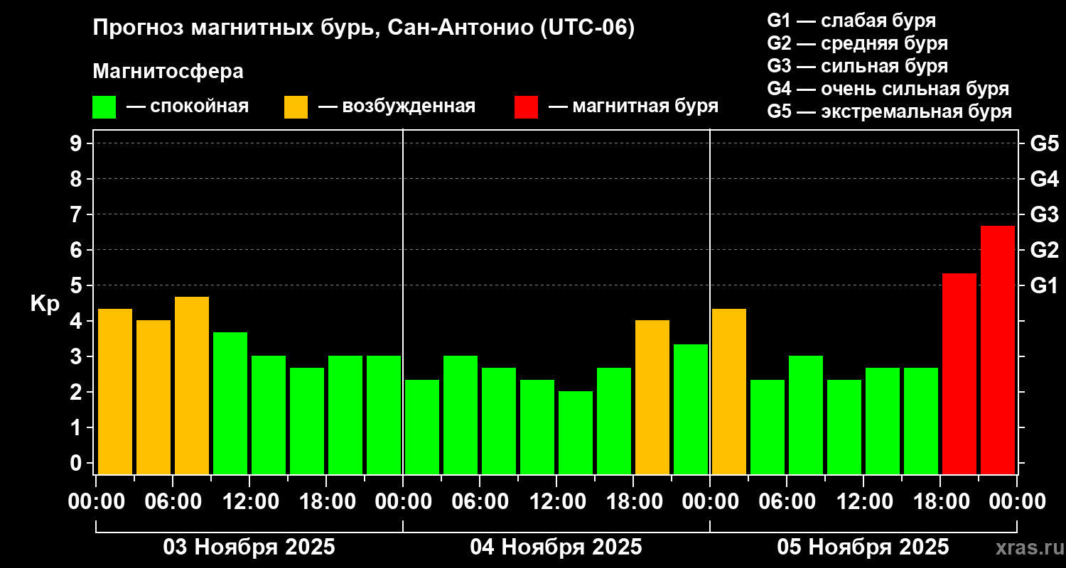 Прогноз магнитных бурь Сан-Антонио — 3 ноября 2025 года