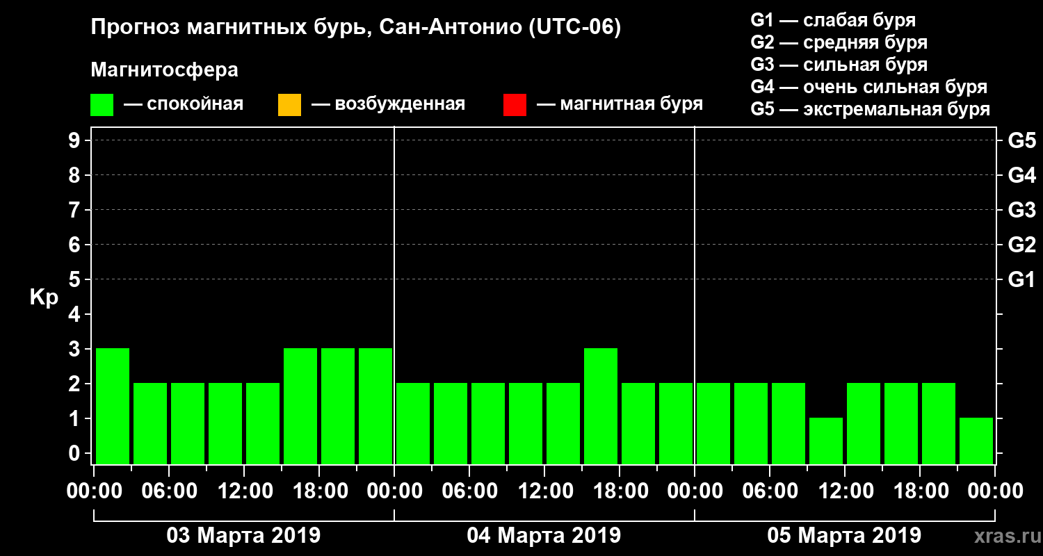 Прогноз магнитных бурь Сан-Антонио — 3 марта 2019 года
