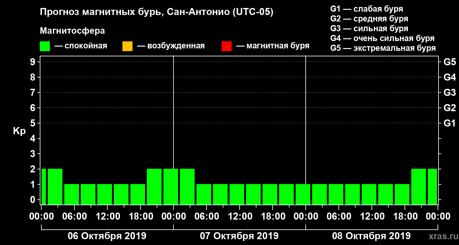 Прогноз магнитных бурь Сан-Антонио — 6 октября 2019 года