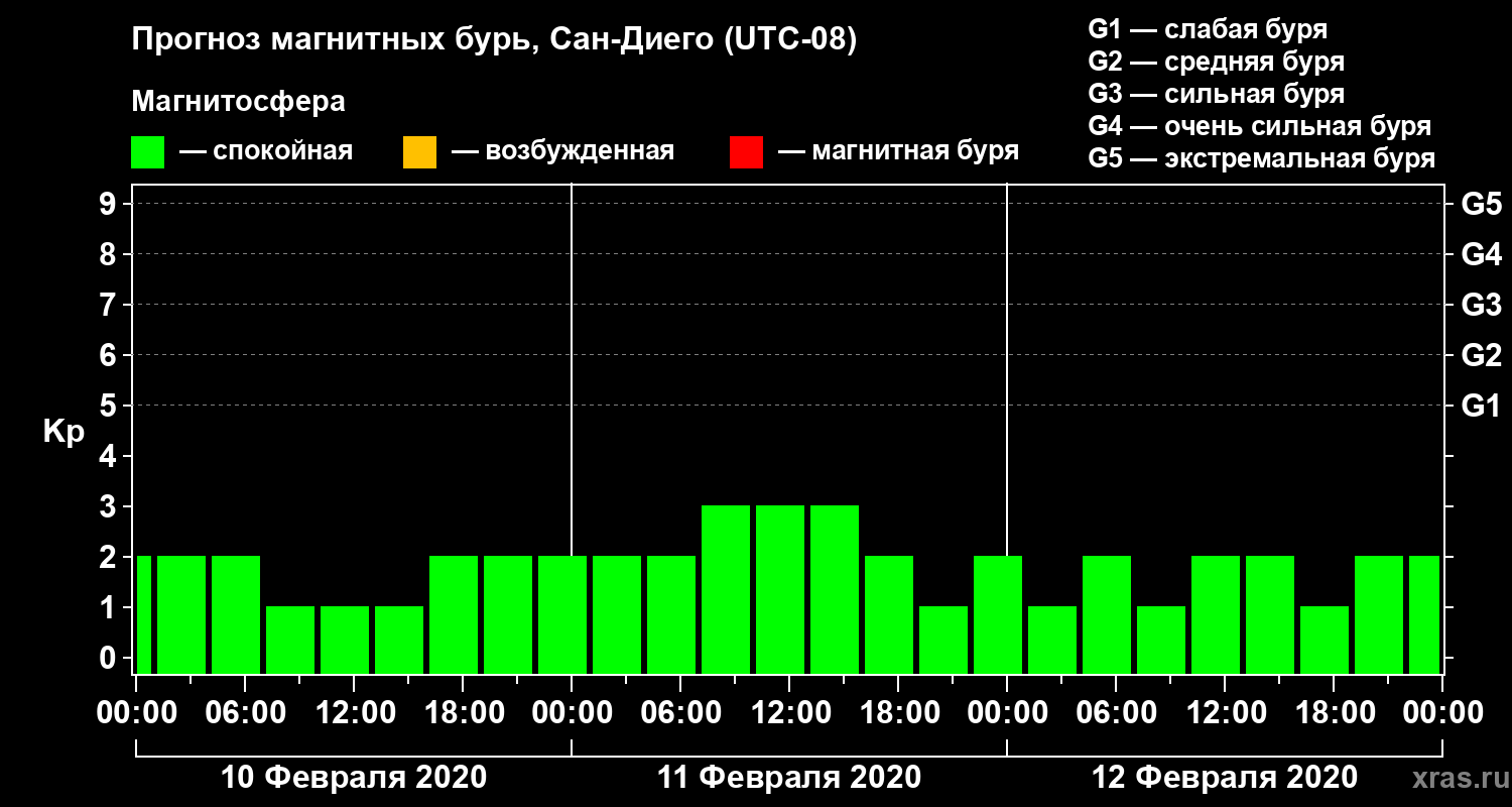 Прогноз магнитных бурь Сан-Диего на 10 февраля 2020 года
