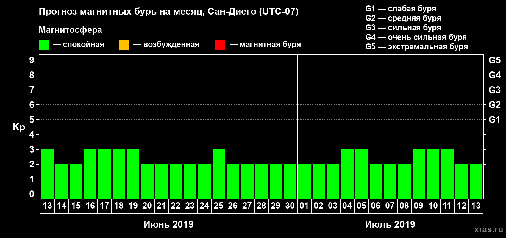Прогноз магнитных бурь Сан-Диего — 13 июня 2019 года